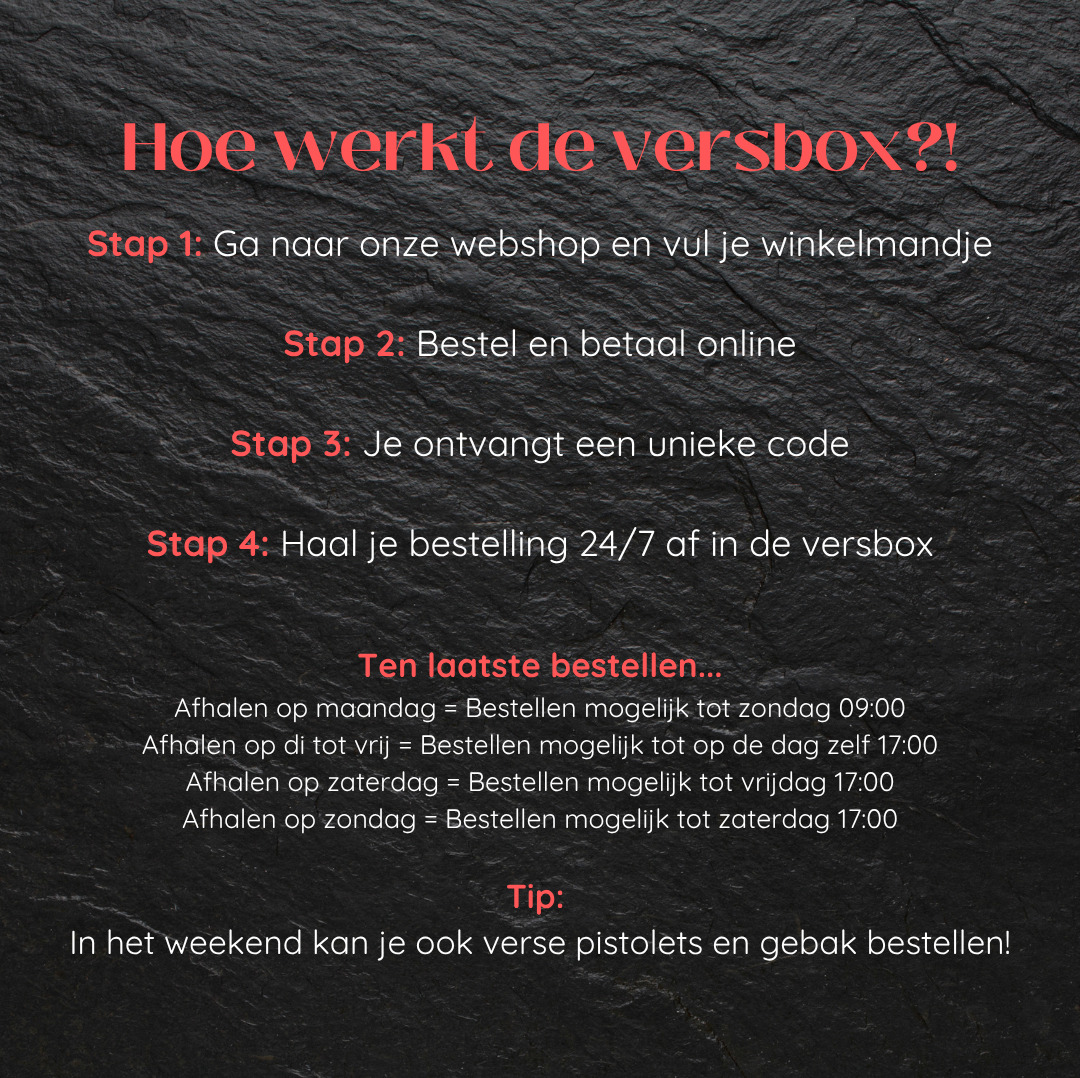 Je kan nu 24/7 winkelen & afhalen in de versbox! Meer info?
